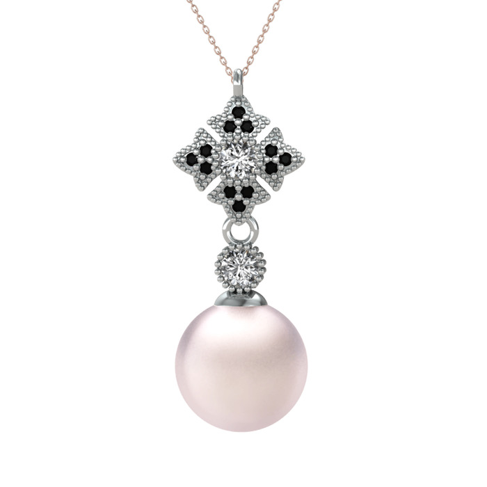 Pembe inci, beyaz zirkon ve siyah zirkon 925 ayar gümüş kolye (40 cm gümüş rolo zincir)