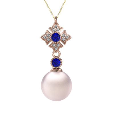 Pembe inci, lab safir ve beyaz zirkon 14 ayar rose altın kolye (40 cm gümüş rolo zincir)
