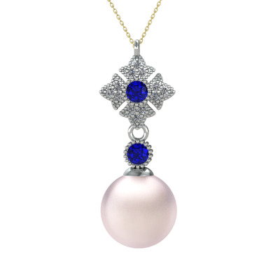 Pembe inci, lab safir ve pırlanta 14 ayar beyaz altın kolye (0.1056 karat, 40 cm altın rolo zincir)