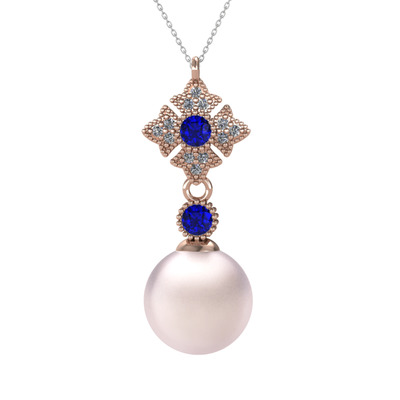 Pembe inci, lab safir ve pırlanta 8 ayar rose altın kolye (0.1056 karat, 40 cm beyaz altın rolo zincir)