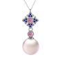 Pembe inci, pembe kuvars ve lab safir 8 ayar beyaz altın kolye (40 cm beyaz altın rolo zincir)