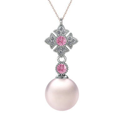 Pembe inci, pembe kuvars ve pırlanta 14 ayar beyaz altın kolye (0.1056 karat, 40 cm rose altın rolo zincir)