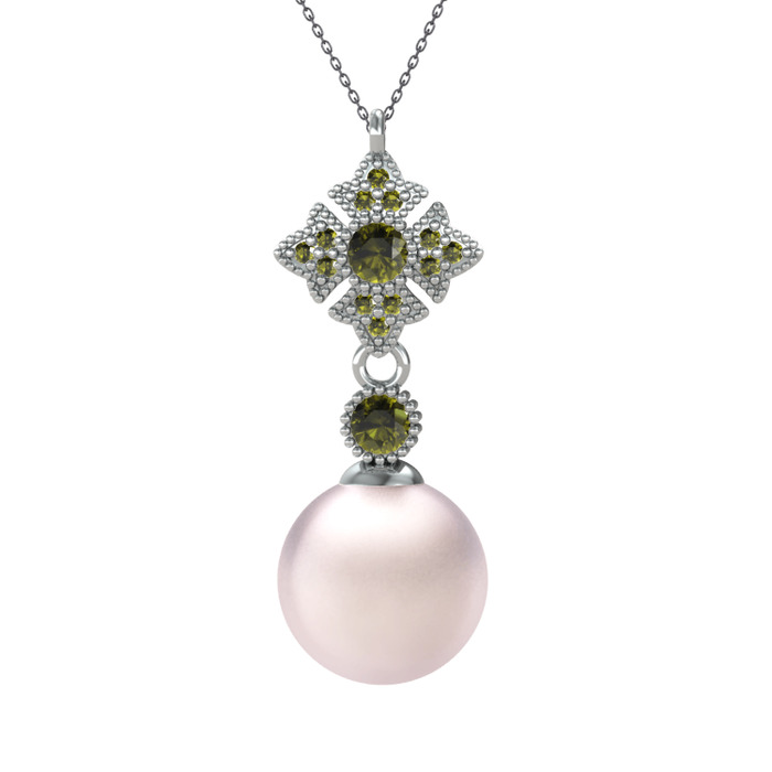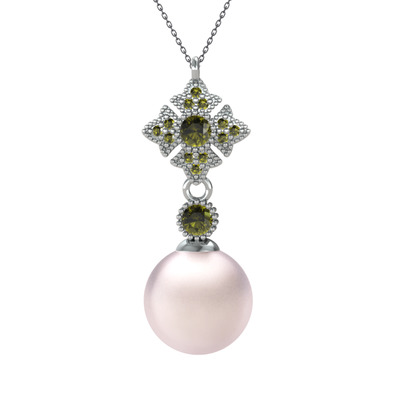 Pembe inci ve peridot 925 ayar gümüş kolye (40 cm gümüş rolo zincir)