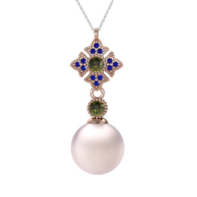 Pembe inci, peridot ve lab safir 8 ayar rose altın kolye (40 cm beyaz altın rolo zincir)