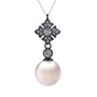 Pembe inci ve pırlanta 925 ayar siyah rodyum kaplama gümüş kolye (0.3256 karat, 40 cm beyaz altın rolo zincir)