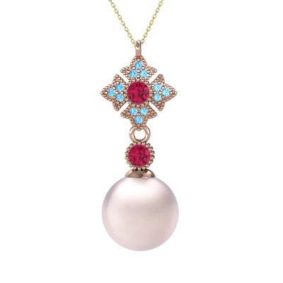 Pembe inci, rodolit garnet ve akuamarin 925 ayar rose altın kaplama gümüş kolye (40 cm altın rolo zincir)