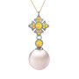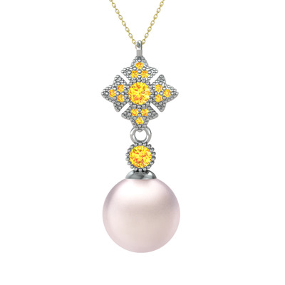 Pembe inci ve sitrin 8 ayar beyaz altın kolye (40 cm gümüş rolo zincir)