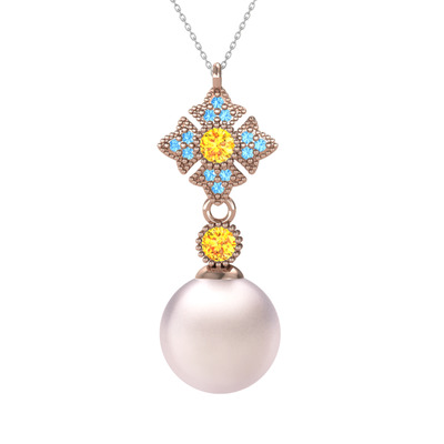 Pembe inci, sitrin ve akuamarin 14 ayar rose altın kolye (40 cm beyaz altın rolo zincir)
