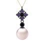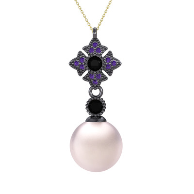 Pembe inci, siyah zirkon ve ametist 925 ayar siyah rodyum kaplama gümüş kolye (40 cm altın rolo zincir)
