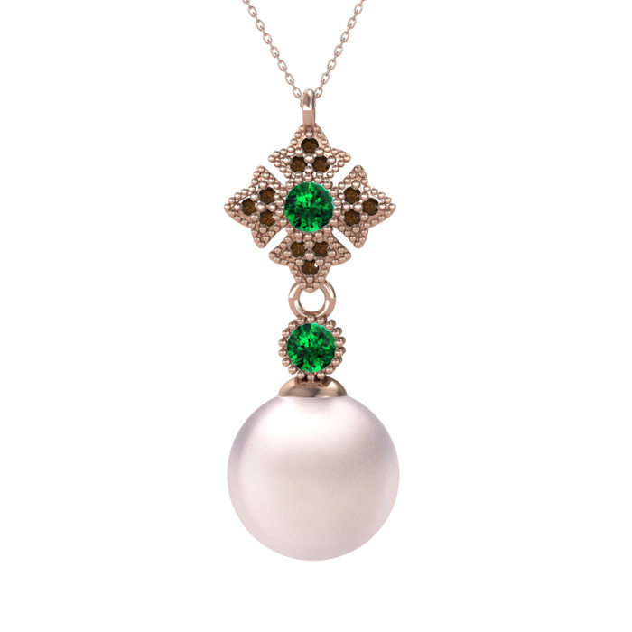 Pembe inci, yeşil kuvars ve dumanlı kuvars 925 ayar rose altın kaplama gümüş kolye (40 cm rose altın rolo zincir)