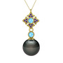 Siyah inci, akuamarin ve ametist 14 ayar altın kolye (40 cm altın rolo zincir)