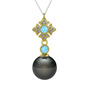 Siyah inci, akuamarin ve pırlanta 8 ayar altın kolye (0.1056 karat, 40 cm gümüş rolo zincir)