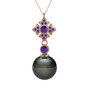 Siyah inci ve ametist 14 ayar rose altın kolye (40 cm gümüş rolo zincir)
