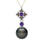 Siyah inci, ametist ve dumanlı kuvars 14 ayar beyaz altın kolye (40 cm gümüş rolo zincir)