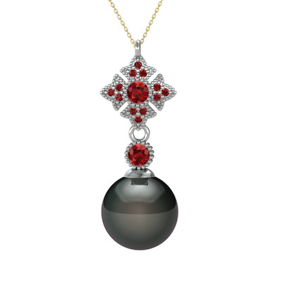 Siyah inci ve garnet 14 ayar beyaz altın kolye (40 cm altın rolo zincir)