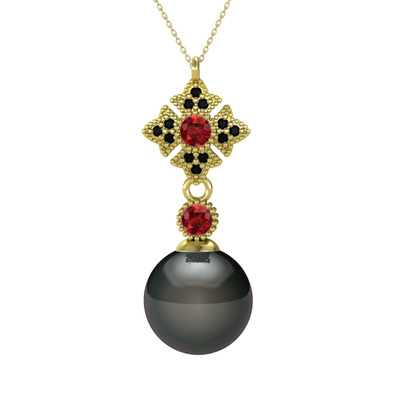 Siyah inci, garnet ve siyah zirkon 8 ayar altın kolye (40 cm altın rolo zincir)