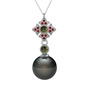 Siyah inci, peridot ve garnet 925 ayar gümüş kolye (40 cm gümüş rolo zincir)