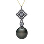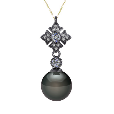 Siyah inci, pırlanta ve beyaz zirkon 925 ayar siyah rodyum kaplama gümüş kolye (0.22 karat, 40 cm gümüş rolo zincir)