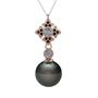 Siyah inci, pırlanta ve siyah zirkon 14 ayar rose altın kolye (0.22 karat, 40 cm beyaz altın rolo zincir)