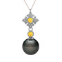 Siyah inci, sitrin ve beyaz zirkon 14 ayar beyaz altın kolye (40 cm rose altın rolo zincir)