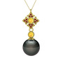 Siyah inci, sitrin ve garnet 8 ayar altın kolye (40 cm altın rolo zincir)