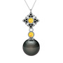 Siyah inci, sitrin ve siyah zirkon 14 ayar beyaz altın kolye (40 cm beyaz altın rolo zincir)