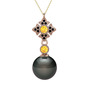 Siyah inci, sitrin ve siyah zirkon 14 ayar rose altın kolye (40 cm gümüş rolo zincir)
