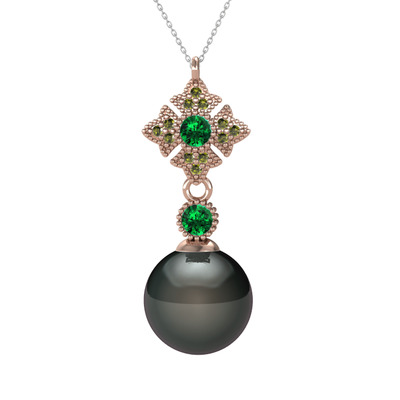 Siyah inci, yeşil kuvars ve peridot 8 ayar rose altın kolye (40 cm beyaz altın rolo zincir)