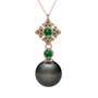 Siyah inci, yeşil kuvars ve peridot 925 ayar rose altın kaplama gümüş kolye (40 cm rose altın rolo zincir)