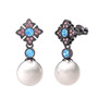 Inci, akuamarin ve pembe kuvars 925 ayar siyah rodyum kaplama gümüş küpe