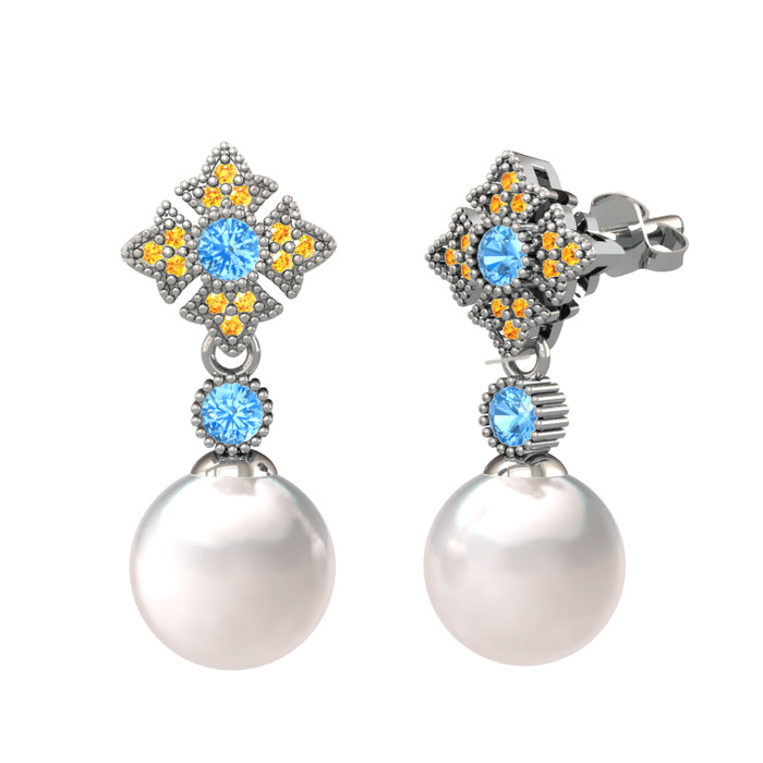 Inci, akuamarin ve sitrin 18 ayar beyaz altın küpe