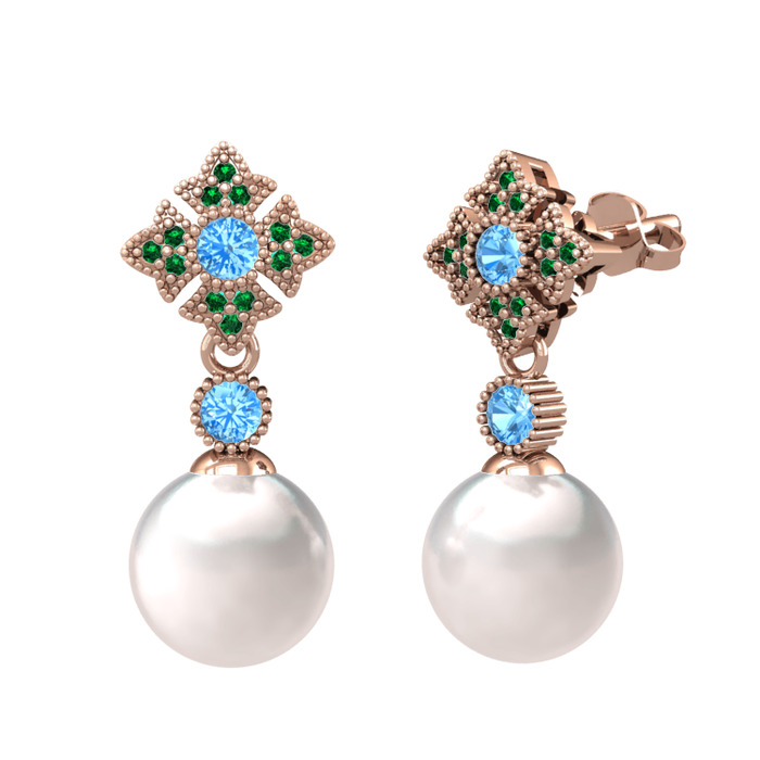Inci, akuamarin ve yeşil kuvars 8 ayar rose altın küpe