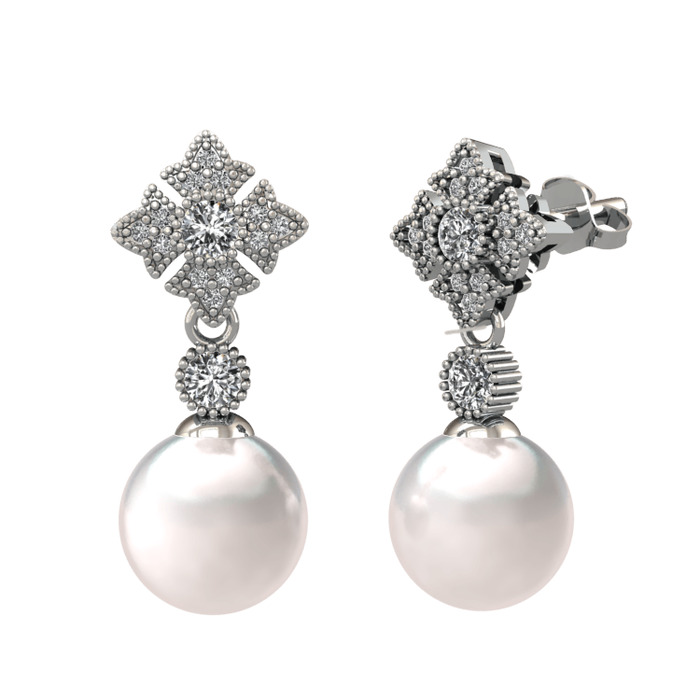 Inci ve beyaz zirkon 14 ayar beyaz altın küpe