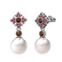 Inci, dumanlı kuvars ve rodolit garnet 14 ayar beyaz altın küpe