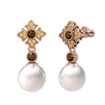 Inci, dumanlı kuvars ve sitrin 8 ayar rose altın küpe