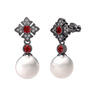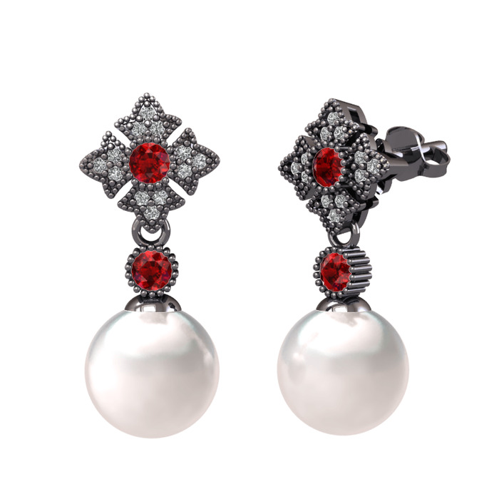 Inci, garnet ve beyaz zirkon 925 ayar siyah rodyum kaplama gümüş küpe