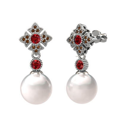 Inci, garnet ve dumanlı kuvars 925 ayar gümüş küpe