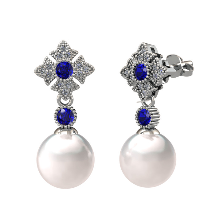 Inci, lab safir ve pırlanta 18 ayar beyaz altın küpe (0.2112 karat)
