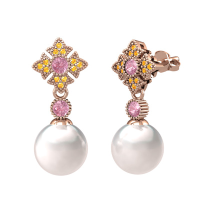 Inci, pembe kuvars ve sitrin 925 ayar rose altın kaplama gümüş küpe