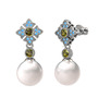 Inci, peridot ve akuamarin 14 ayar beyaz altın küpe