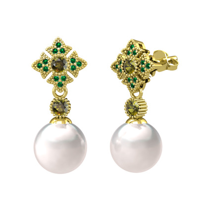 Inci, peridot ve yeşil kuvars 925 ayar altın kaplama gümüş küpe