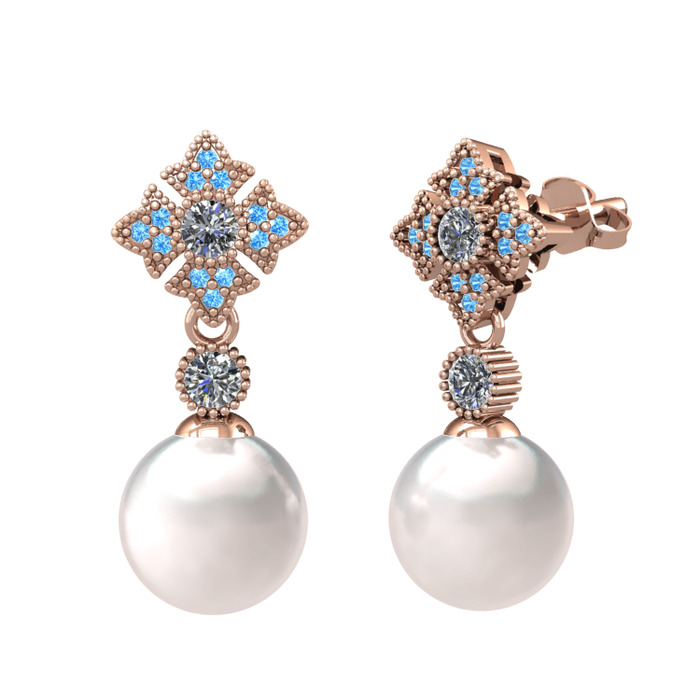 Inci, pırlanta ve akuamarin 14 ayar rose altın küpe (0.44 karat)