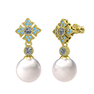 Inci, pırlanta ve akuamarin 18 ayar altın küpe (0.44 karat)