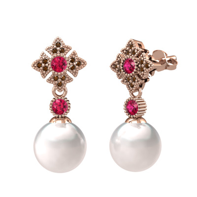 Inci, rodolit garnet ve dumanlı kuvars 14 ayar rose altın küpe
