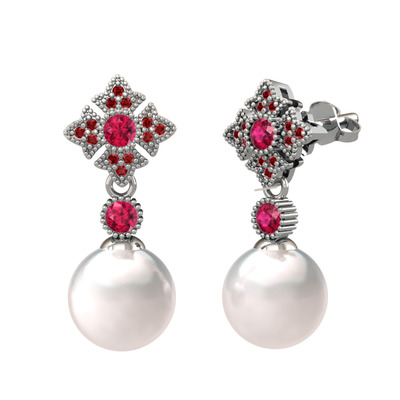 Inci, rodolit garnet ve garnet 8 ayar beyaz altın küpe
