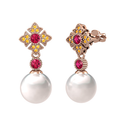 Inci, rodolit garnet ve sitrin 925 ayar rose altın kaplama gümüş küpe