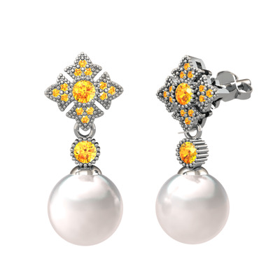 Inci ve sitrin 18 ayar beyaz altın küpe