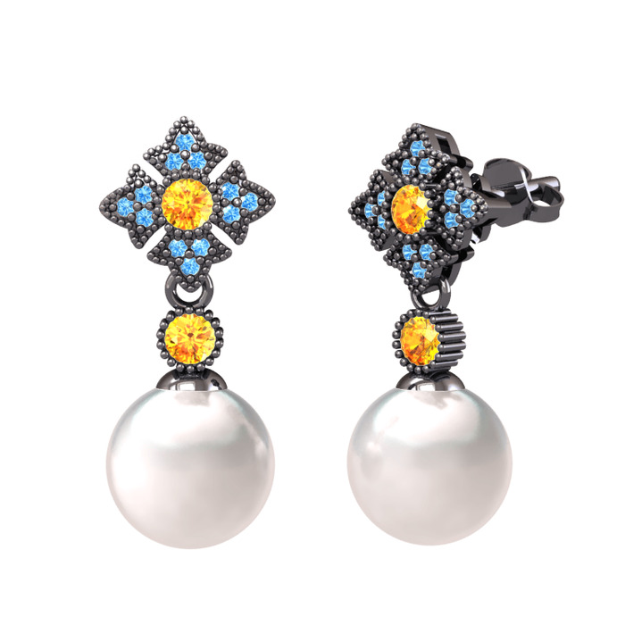 Inci, sitrin ve akuamarin 925 ayar siyah rodyum kaplama gümüş küpe
