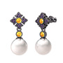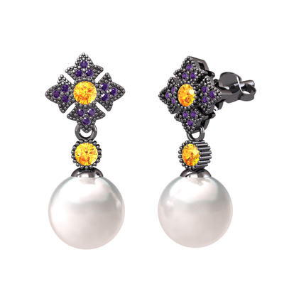 Inci, sitrin ve ametist 925 ayar siyah rodyum kaplama gümüş küpe