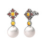 Inci, sitrin ve garnet 925 ayar gümüş küpe